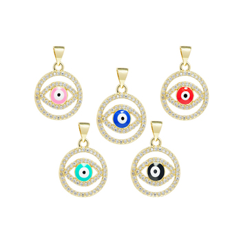 תכשיטי מפעל יהלומים cz עגולים סביב עין הרע בסגנון אמייל שרשרת אביזרים