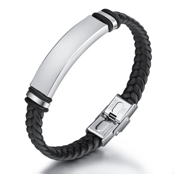 Diy Gravable Roestvrij Staal Armband Verstelbare Id Pu Lederen Armband Voor Graveren En Afdrukken Van Foto 'S