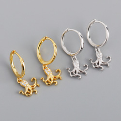 Đa năng thời trang Kim Cương Zircon bạch tuộc S925 Sterling Bạc thả Bông tai cho phụ nữ
