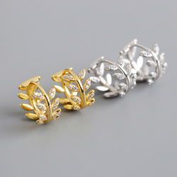 Ánh Sáng Sang Trọng Phóng Đại Vàng Kim Cương Ô Liu Lá S925 Sterling Bạc Tai Khóa Lá Hoop Bông Tai Cho Phụ Nữ