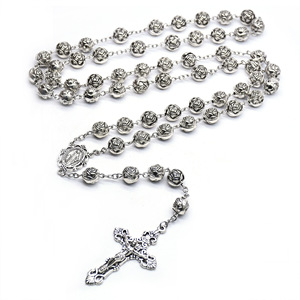 10 Mét Chữ Thập Hợp Kim Hoa Vòng Cổ Rose Cổ Bạc Mân Côi Vòng Cổ Tôn Giáo Christian Cầu Nguyện Mân Côi